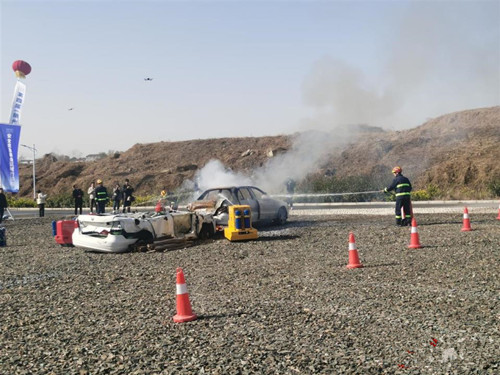 隨州安全應(yīng)急基地是國內(nèi)首家集真實災(zāi)害場景、實戰(zhàn)演練、應(yīng)急裝備測試等功能于一體的綜合性基地。本次裝備展采用靜態(tài)展示與動態(tài)展示相結(jié)合的方式,在傳統(tǒng)的固定展區(qū)基礎(chǔ)上,讓裝備“動起來”。動態(tài)展示環(huán)節(jié),現(xiàn)場模擬車輛著火后,兩臺載有鋰電池裝備的履帶式無人滅火車,通過火災(zāi)監(jiān)測預(yù)警功能與硅膠納米結(jié)構(gòu)抗溶泡沫滅火劑智能噴射系統(tǒng),有效撲滅現(xiàn)場火災(zāi),實現(xiàn)“發(fā)現(xiàn)即處置”,打造“感知—響應(yīng)—滅火—轉(zhuǎn)移”一體化閉環(huán)。